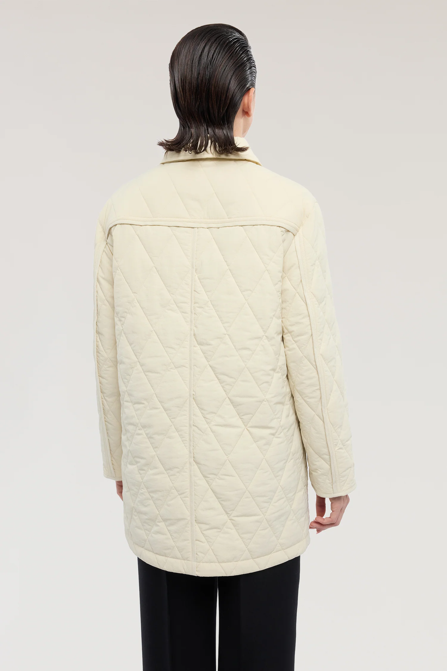 Designed for city life, the long padded jacket blends functionality with contemporary aesthetics. The diamond-quilted design gives the garment character, while the shirt collar and button closure define its timeless elegance. The applied pockets complete its daily practicality. Perfect for an urban and dynamic look, it easily pairs with jeans and trainers for a casual-chic outfit, or with tailored trousers for a more refined touch. A versatile piece that accompanies every moment of the day with style and comfort.